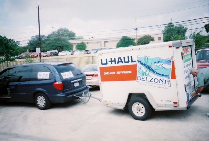Previous to coming to Austin, and since Kim and Alan were in the Biloxi area due to the plumbing job in Bay St. Louis, they visited with a couple in Biloxi who had retrieved some of Joanne's things from her Santa Maria apartment. The secretariat, paintings, and several bins were loaded into the van. These items were then shifted to the trailer after renting it in Austin. The plan was to have the items Joanne would need right away in the van, and the trailer goods to then be put into storage until she obtained her apartment.