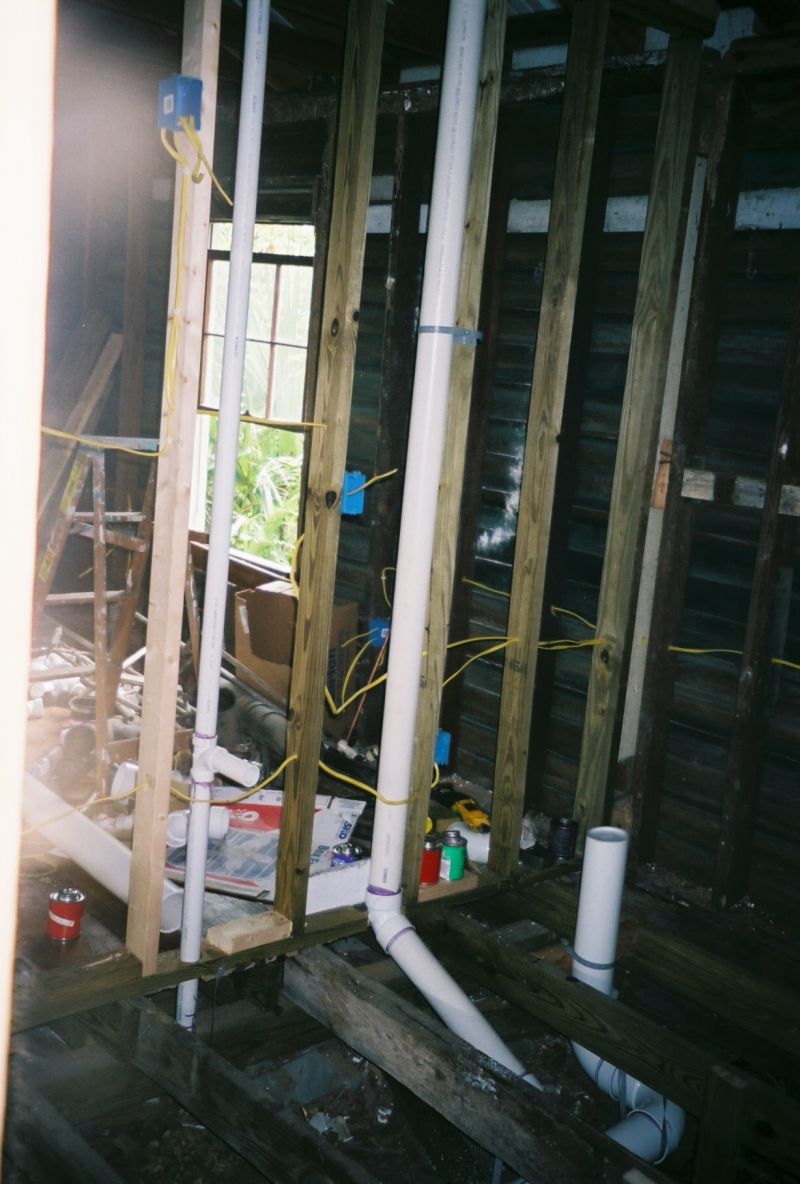 On Sunday the 23rd, we worked from 8 to 5 and I officially became a journeyman plumber for a day and a half. It was fun hearing Terri proclaim "Look we have real pipes!" Kim's plumbing skills were amazing and we worked until we ran out of the 2" PVC. Kim made another list and we headed for the Home Depot again. On Monday we returned at 8 and Kim worked on finishing up the kitchen drain and vent, while Alan had some other meetings and affairs to tend to. The job was done and tools packed by about 2:00